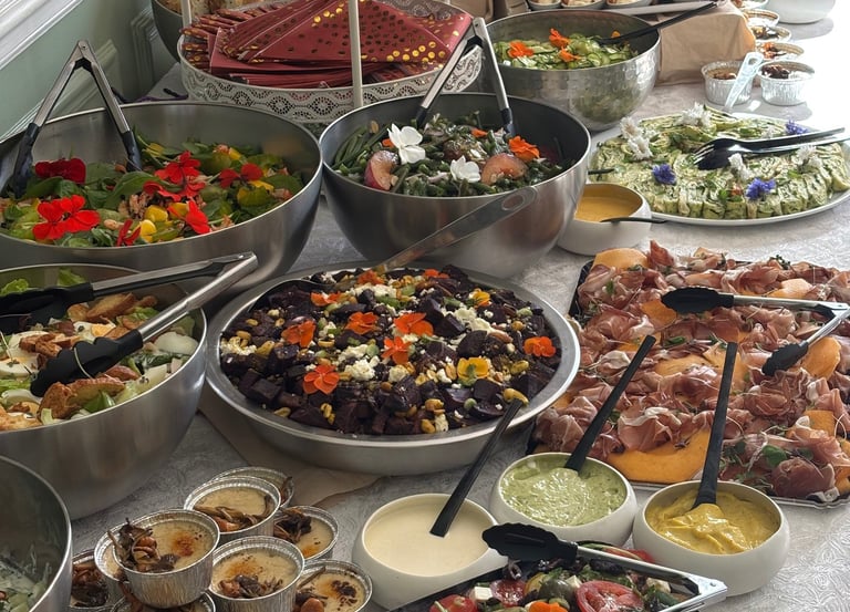 Buffet traiteur mobile, autonome et convivial, idéal pour événements professionnels et cocktails.